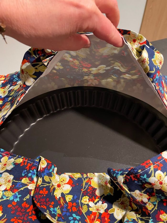 Extérieur coton Intérieur tissu coton 42cm X 42cm Lavable en machine et sèche linge autorisé S’adapte à tous types de plats Sac à gâteau Sac à pizza Idée cadeau