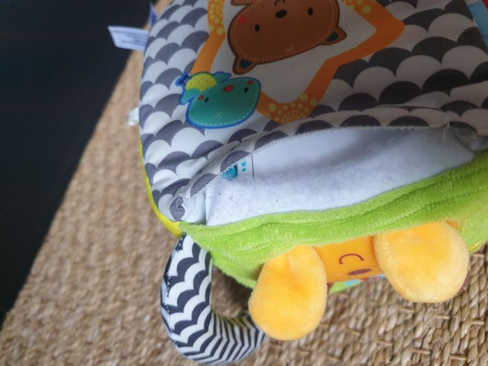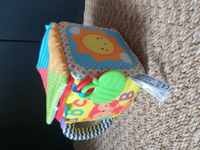 Cube sensoriel interactif pour les tout-petits de 3 à 24 mois. Très bon état, comme neuf. Aucune marque. Bébé explore les 6 faces du cube pour développer son sens du toucher. Le cube dispose de 3 boutons pour découvrir les couleurs, les formes, les chiffres et plus encore. Le visage de l'ours s'illumine au rythme des mélodies pour captiver l'attention de Bébé. Les différentes textures et les éléments à manipuler favorisent le développement de la motricité fine. Inclut trois balles de jeu avec des textures variées. Plus de 50 chansons, mélodies, sons et phrases pour stimuler l'apprentissage. Fonction d'arrêt automatique pour économiser les piles. Notice fournie. Fonctionne avec 2 piles LR06 AA non incluses. Envoi rapide dans colis protégé. Voir d’autres articles puériculture sous mon profil