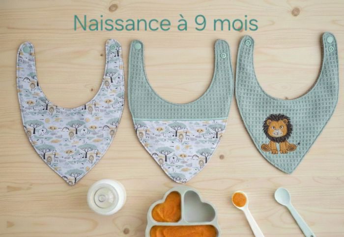 Lot de 3 bavoirs bandana Naissance à 9 mois Création fait main artisanale  - photo numéro 1