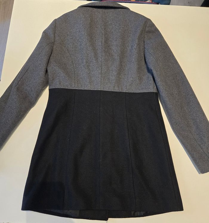 Joli manteau en laine pour femme de la marque gémo en taille 38. Couleurs gris et noir. Très légèrement cintrée. Avec deux poches latérales. Pour la longueur, le manteau arrive jusqu’au dessus du genou. Jamais porté. Idéal pour un vêtement élegant pour l’hiver ou belle idée cadeau. N’hésitez pas à me faire une offre ou à me contacter.