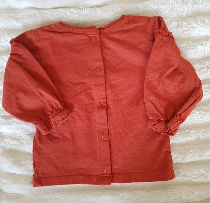 Tee-shirt manches longues fille 3 mois Pressions tout le long du dos Couleur terracotta