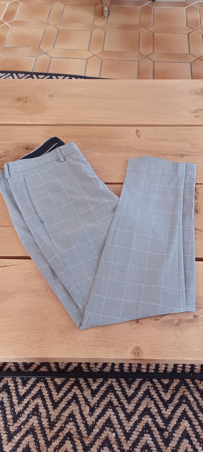 Pantalon slimfit carreaux de couleur gris clair Taille 44 Le pantalon n a été porté qu une fois En parfait état