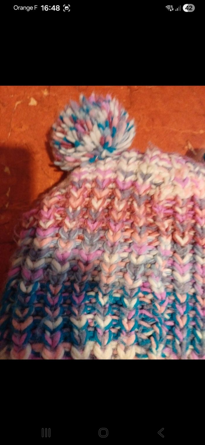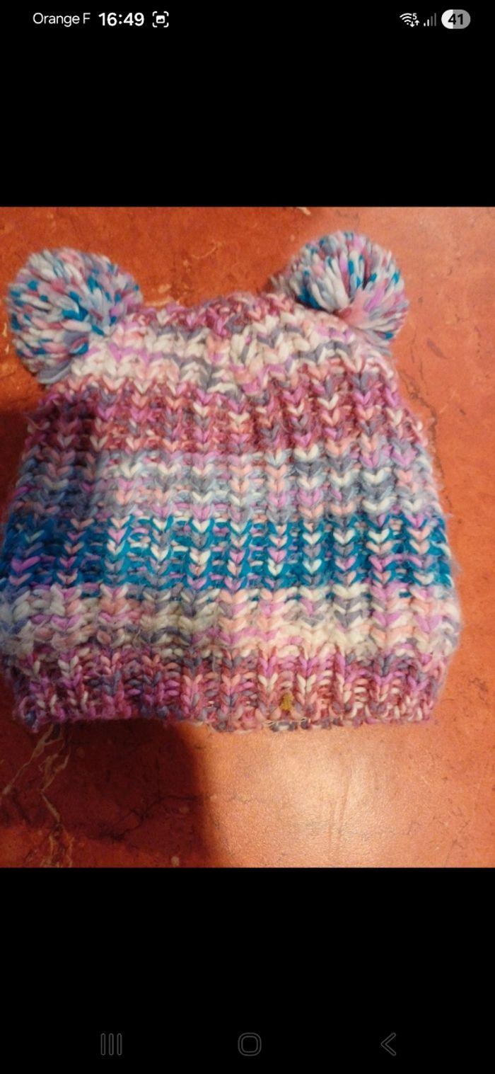Bonnet multicouleurs. Avec 2 pompoms sur le dessus. Polaire à l intérieur