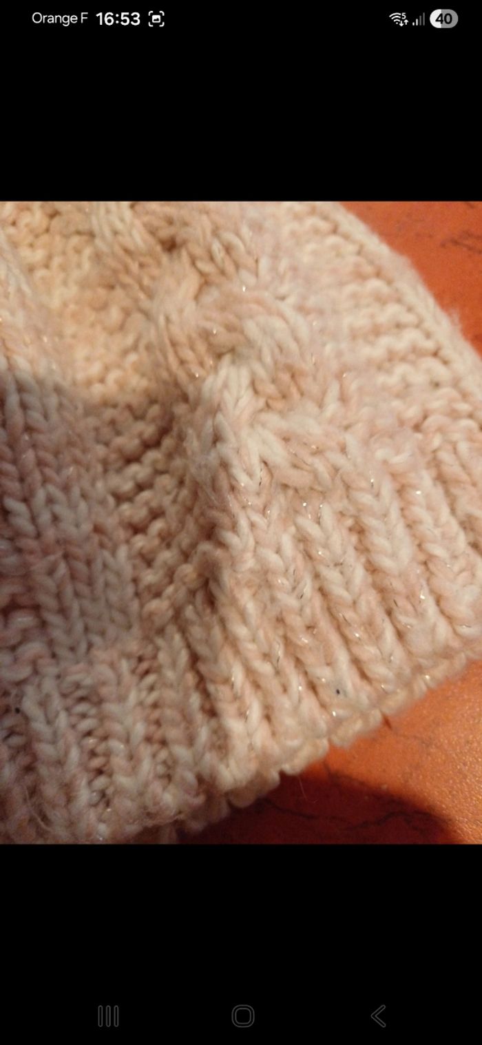 Bonnet avec fils pailletés.