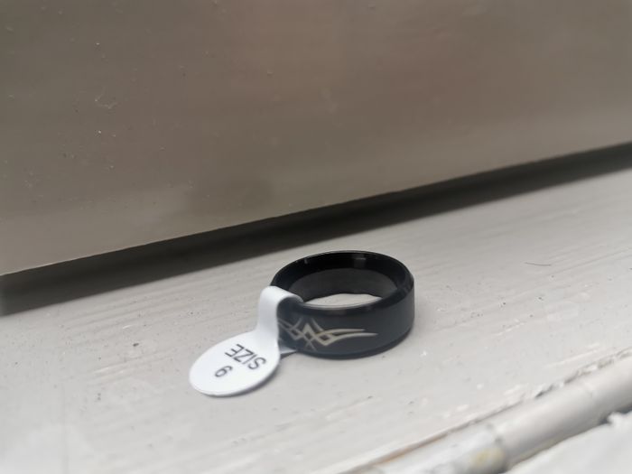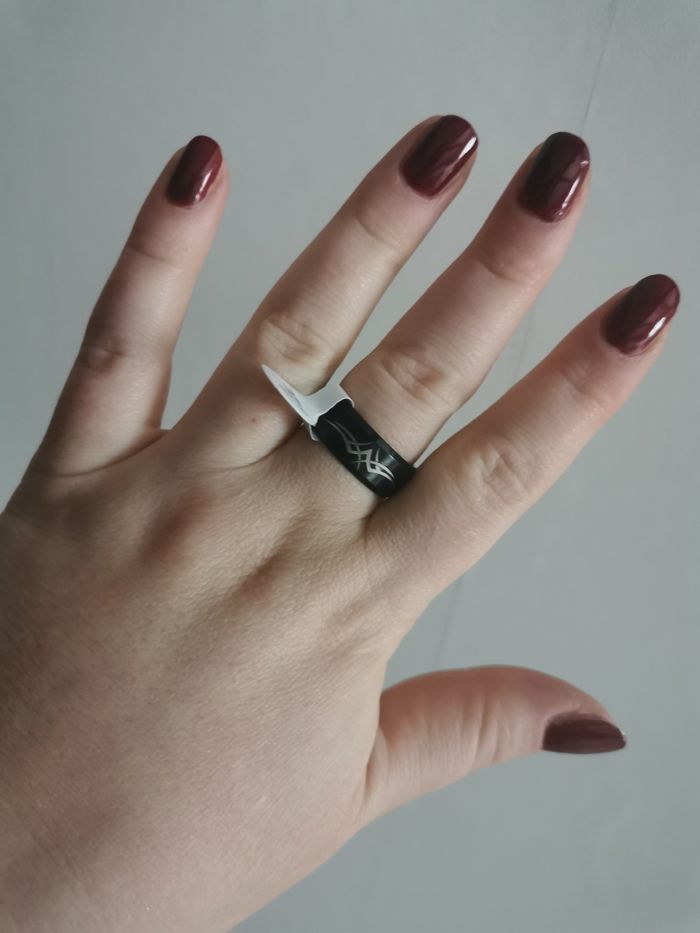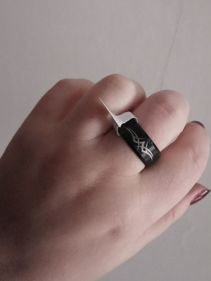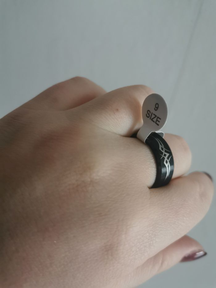 Bague anneau en métal noir motif celtique pour homme. Bague neuf, avec étiquette de taille 9. Dimensions : Hauteur : 8 mm Diamètre : 20 mm Taille : 59,7 (9) - 62 Poids : 8g