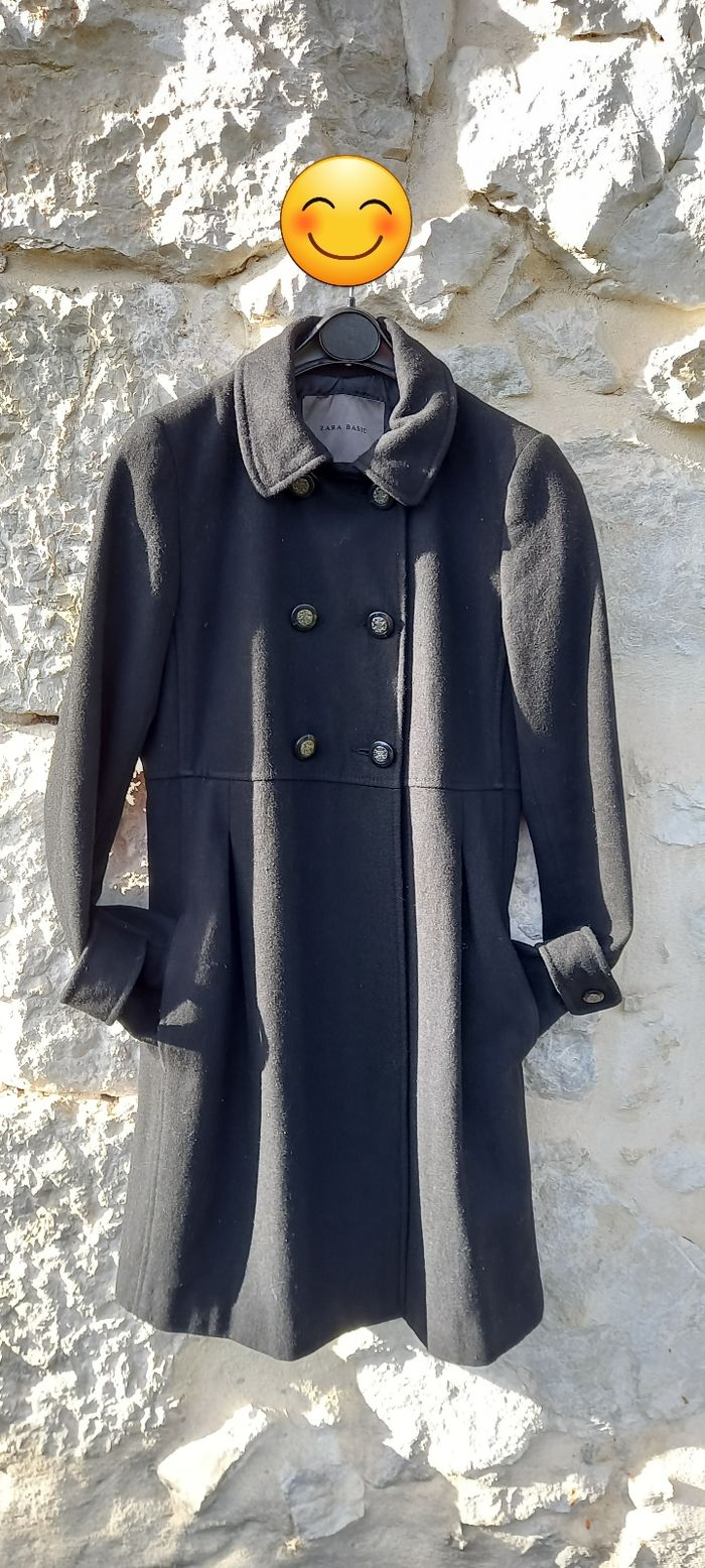 Un manteau zara basic t38 , mesures sur les photos . Recousu à l intérieur au niveau de l aisselle