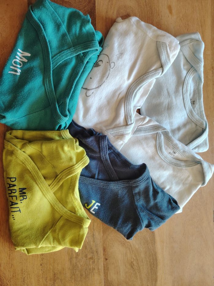 Lot 6 body manches longues Garçon Taille 3 mois Très bon état Fermeture bouton pression