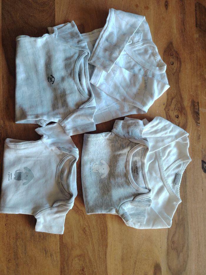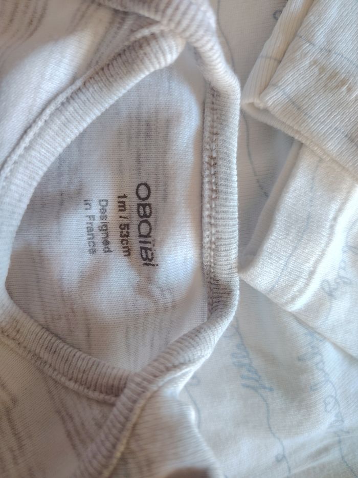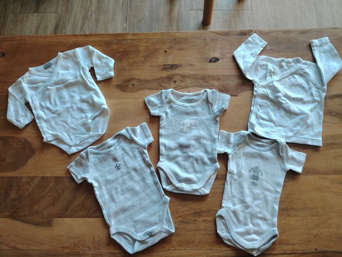 Lot 5 body taille 1 mois dont 3 neufs manches courtes Obaïbi jamais mis et 2 très bon état Vertbaudet (1 haut et 1 manches longues)