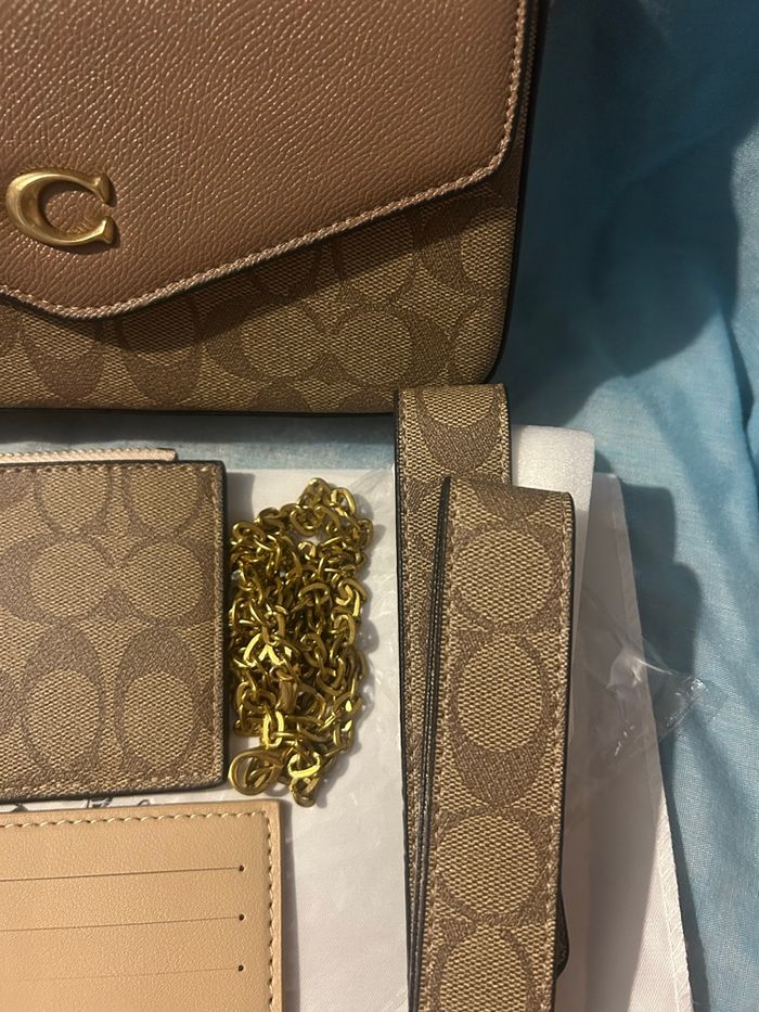Neuf jamais utilisé Comporte plusieurs accessoires tel que 2 bandoulière différentes : une en cuir à motif et une en chaîne doré Comporte aussi , un sac , un porte monnaie et un porte carte Expédition rapide et soigné N’hésitez pas à me contacter pour plus d’informations ou de photo