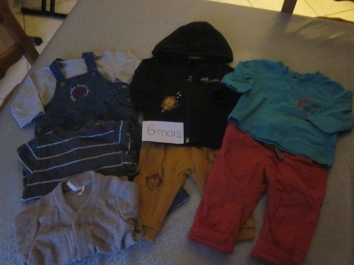 6m, salopette + 3 hauts ml + ensemble 2 pièces + pantalon + gilet, orchestra, vert baudet, kiabi, tao, dpam