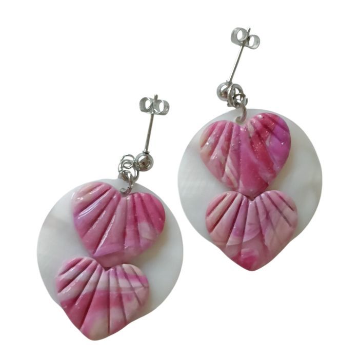 Réalisées entièrement à la main en pâte polymère haute qualité, ces pièces légères et iridescentes évoquent l’amour doux . Attaches acier inoxydable . Un cadeau romantique et tendance pour la Saint-Valentin ou toute l’année ! Matériel. Sequin en nacre blanc, pâte polymère  Couleurs dégradé de rose  Boucles d'oreilles femme et adolescente  Boucles d'oreilles Ni repris, Ni échangé.. pour raisons d'hygiène  Vernis résine UV  Attaches : tige acier inoxydable
