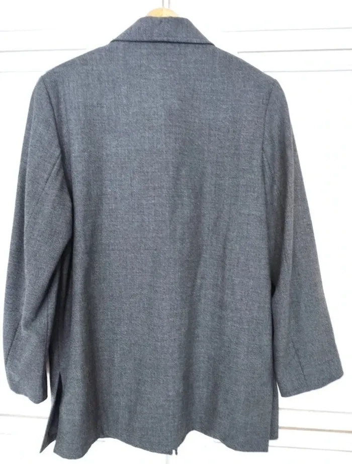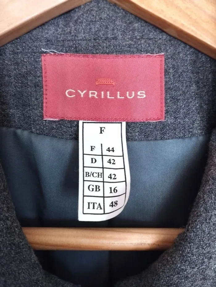 CYRILLUS VESTE T 44 FINES EPAULETTES INTEGREES DRAP DE LAINE EXCELLENTE QUALITE SOUPLE ET INFROISSABLE NON EXTENSIBLE 95% LAINE 3 % POLYAMIDE 2% ELASTHANE EPAULES 44 CM POITRINE 53 CM TAILLE 54 CM BAS 61 CM MANCHES 60 CM LONGUEUR 75 CM