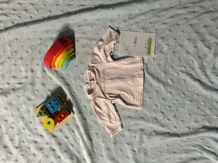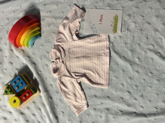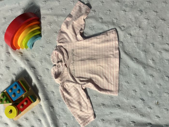 teeshirt manches longues col polo rayé rose et blanc ouverture totale au dos 1 mois prémamn - photo numéro 1