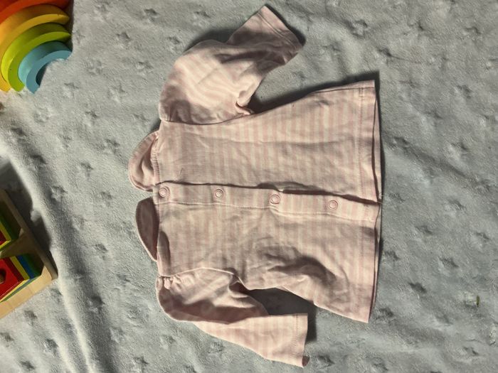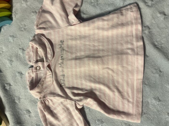 teeshirt manches longues col polo rayé rose et blanc ouverture totale au dos 1 mois prémamn - photo numéro 2