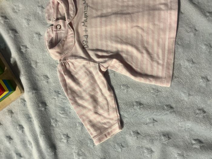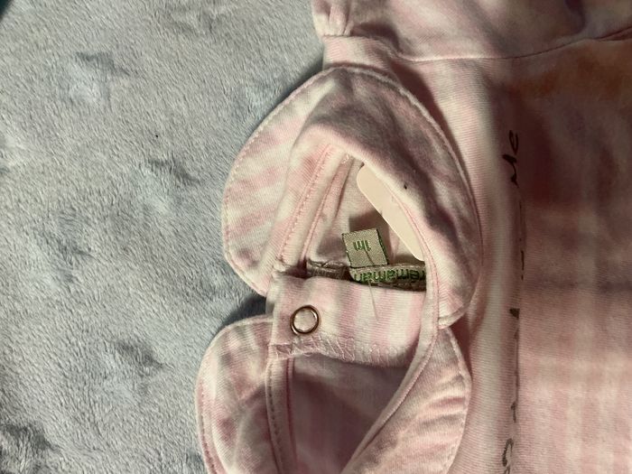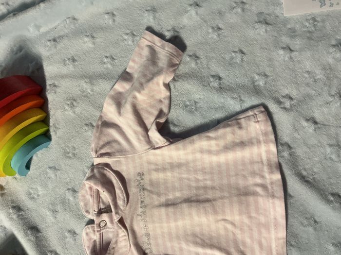 teeshirt manches longues col polo rayé rose et blanc ouverture totale au dos 1 mois prémamn - photo numéro 4