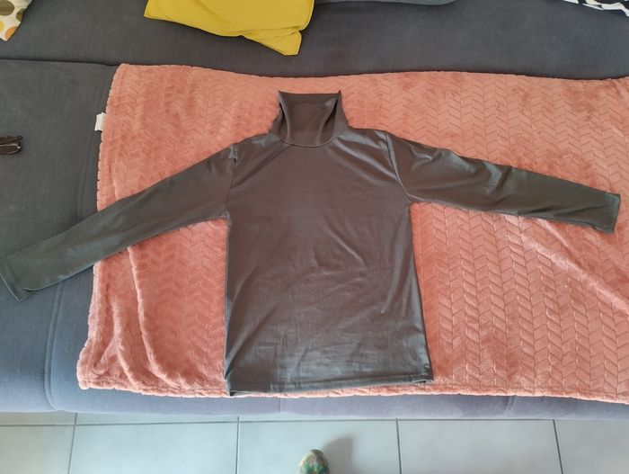T shirt gris a col haut souple et manche longue - photo numéro 2