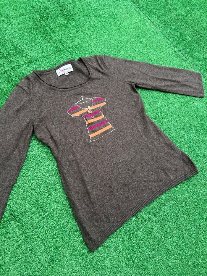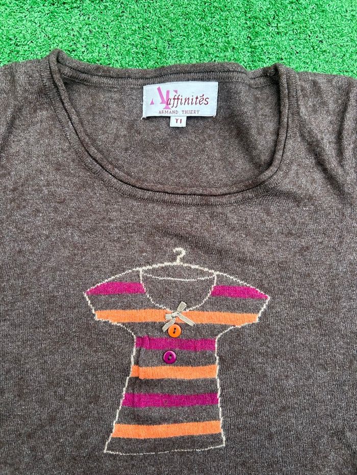 Superbe pull en maille marron chiné avec broderie originale d’un petit haut multicolore (rose, orange, violet) ultra féminin et original. 👕 Marque: Armand Thierry 📏 Longueur: 54 cm 📏 Largeur: 38 cm 📐 Taille: S (T1) 🎨 Couleur: marron chiné 🧶 Matières: 35% polyamide, 35% acrylique, 20% coton, 10% laine 🛍️ N’hésitez pas à faire un lot j’ai beaucoup d’articles en ventes. 📦 Envoi ou remise main propre à Limoges. #pullfemme #pullgris #pullbrodé #infinités #pullhiver #pullmaille #pulloriginal #pullmanches3_4 #pullfemmeS #pullchic #pullbroderie #pullmulticolore #pullconfortable #pullmode #pullautomne #pullélégant #pullfemmehiver #pullgrisbrode #pullfemmeoriginal