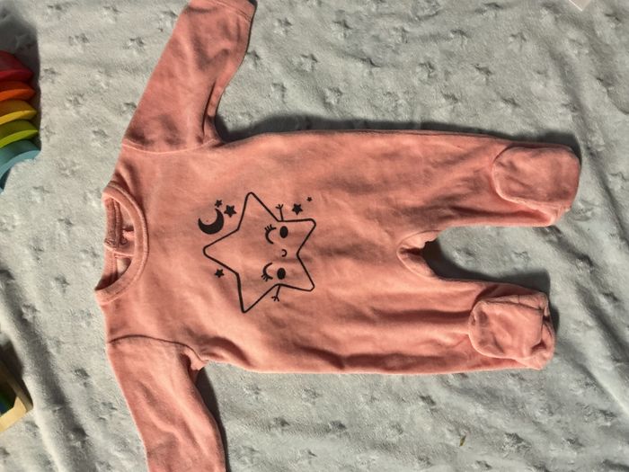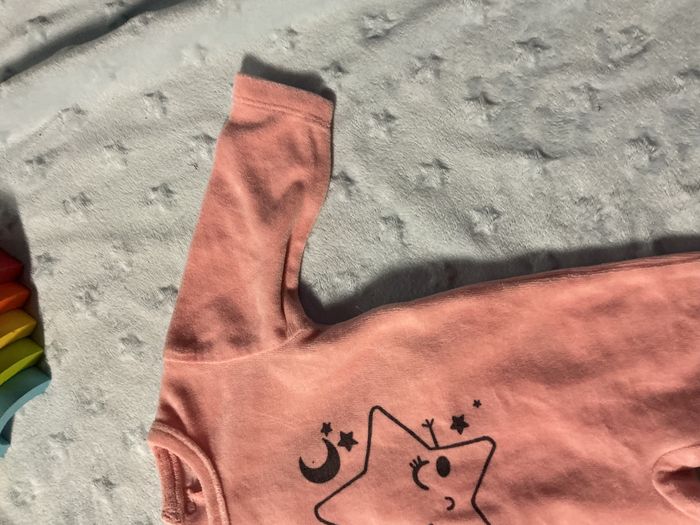 pyjama grenouillère en velours rose impression étoile devant 1 mois pat et ripaton - photo numéro 7