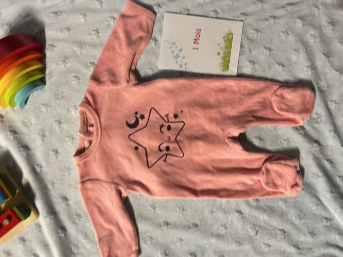 pyjama grenouillère en velours rose impression étoile devant 1 mois pat et ripaton - photo numéro 9
