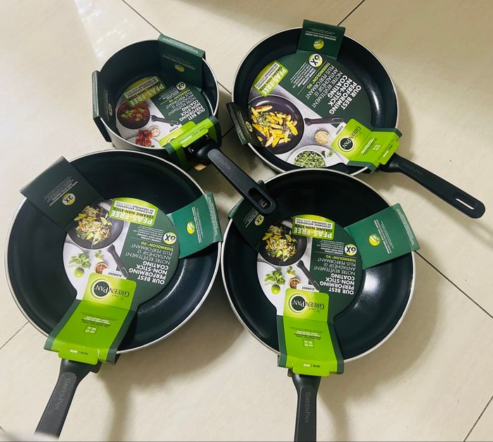 4 poêles ( 2 poêles wok 28cm + 1 casserole 18cm + 1 poêles frypan 28cm) greenpan - photo numéro 1