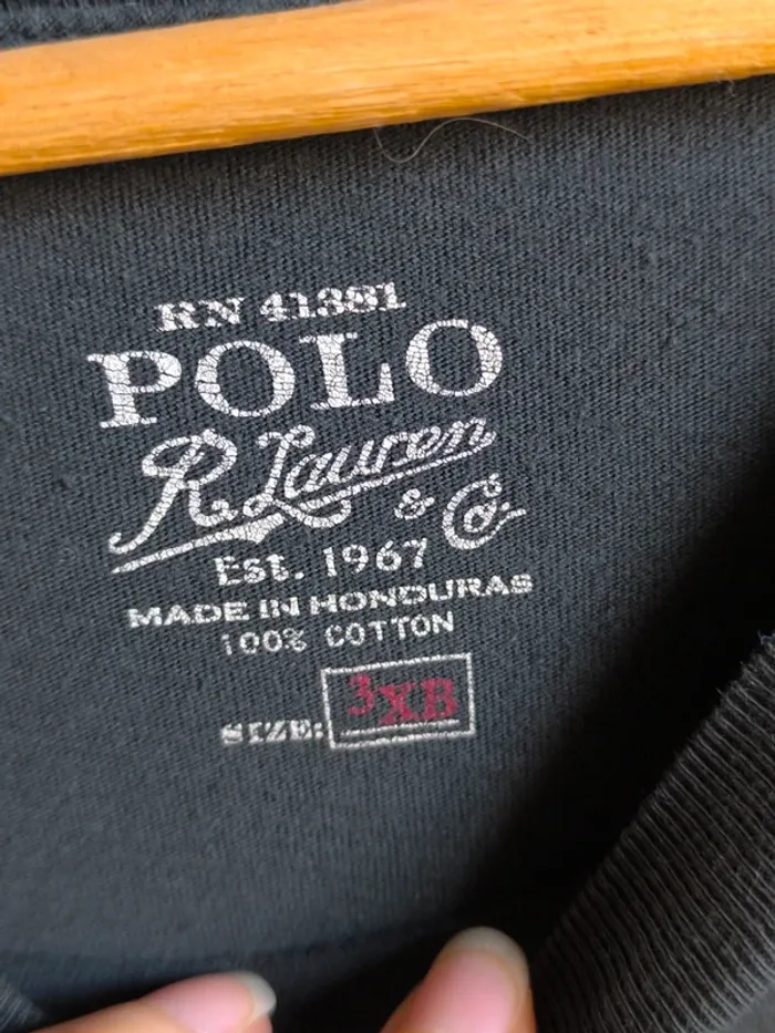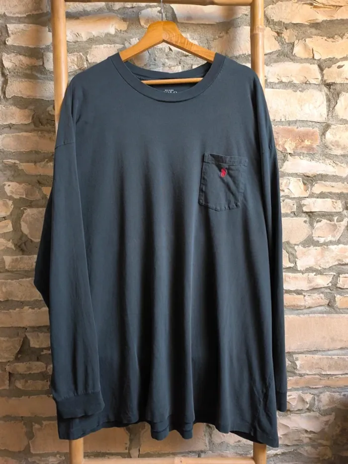 Tee shirt manches longues Ralph Lauren Taille 3XB 3 petits trous présents sur le tee shirt: un à l'arrière de la manche droite, un à l'arrière de l'encolure et un à l'arrière, en bas à droite. Tous visibles en photos. #jeyssihkavêtements #jeyssihkahomme Boite 28