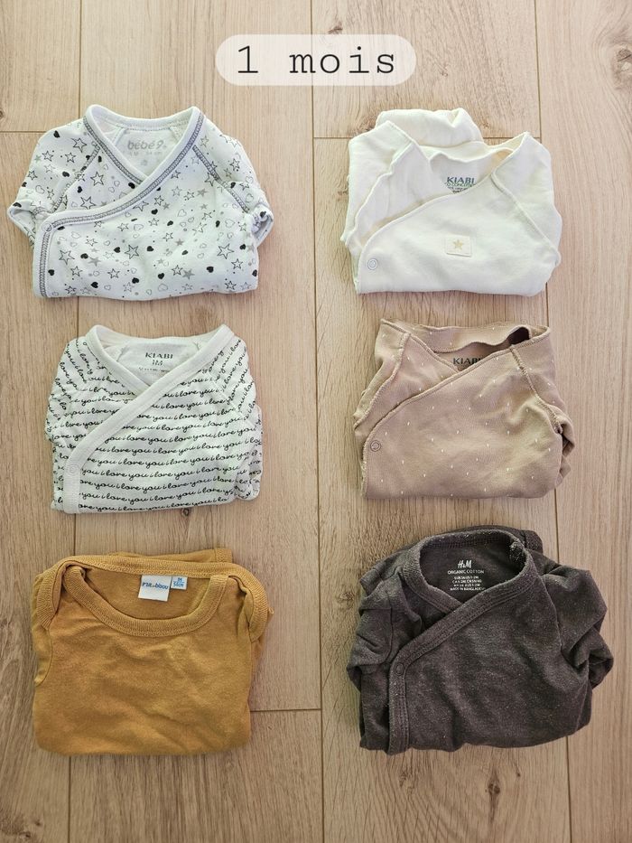 Lot de 6 bodies manches longues - 1 mois Diverses marques