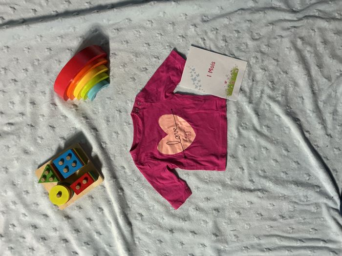 teeshirt manches longues rose impression coeur devant 1 mois - photo numéro 7
