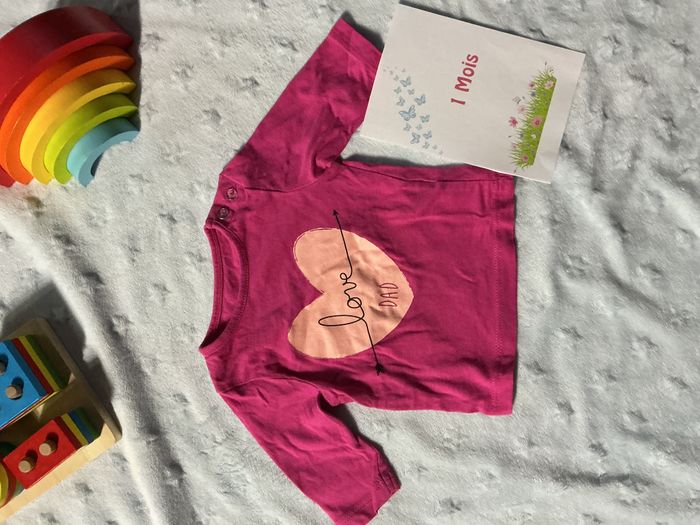teeshirt manches longues rose impression coeur devant 1 mois - photo numéro 1