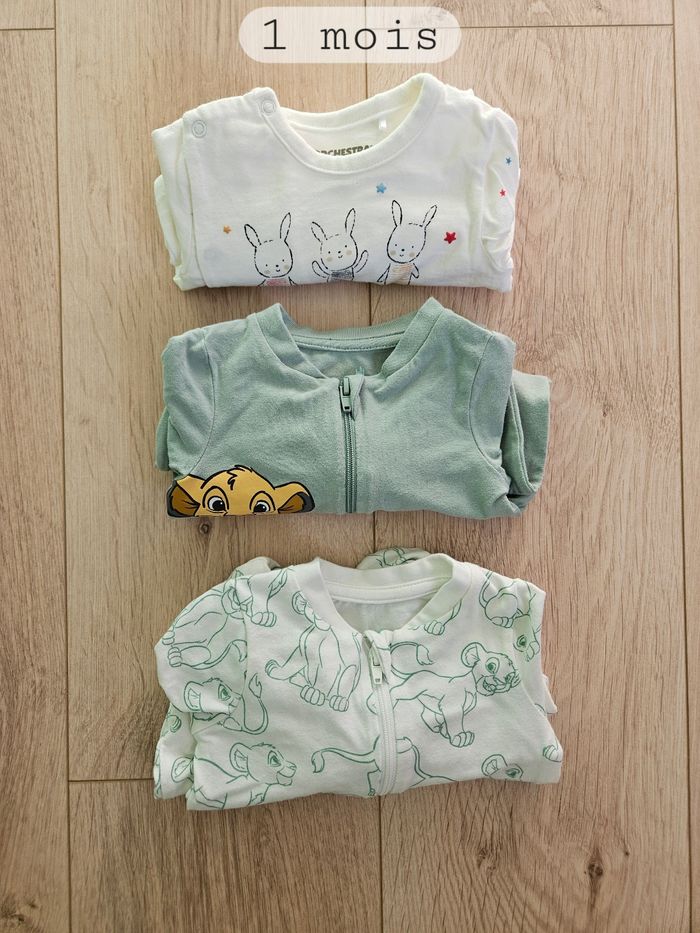 Lot de 3 pyjamas légers manches longues, taille 1 mois Marque Orchestra 2 des pyjamas sont de la collection Disney Le roi lion