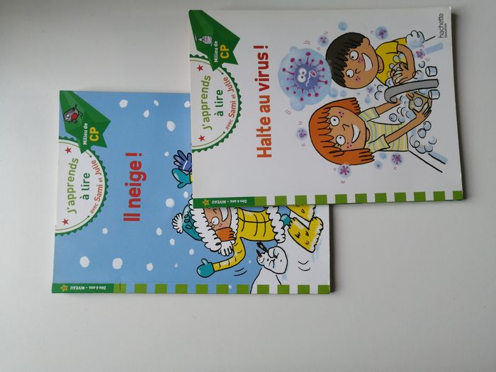 lot de 2 livres j'apprends à lire avec sami et julie hachette éducation milieu CP 31 pages halte au virus ! ISBN 9782017147466 il neige ! ISBN 9782017013297 retrouvez d'autres livres de cette collection dans mon dressing
