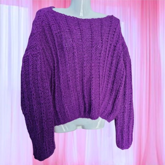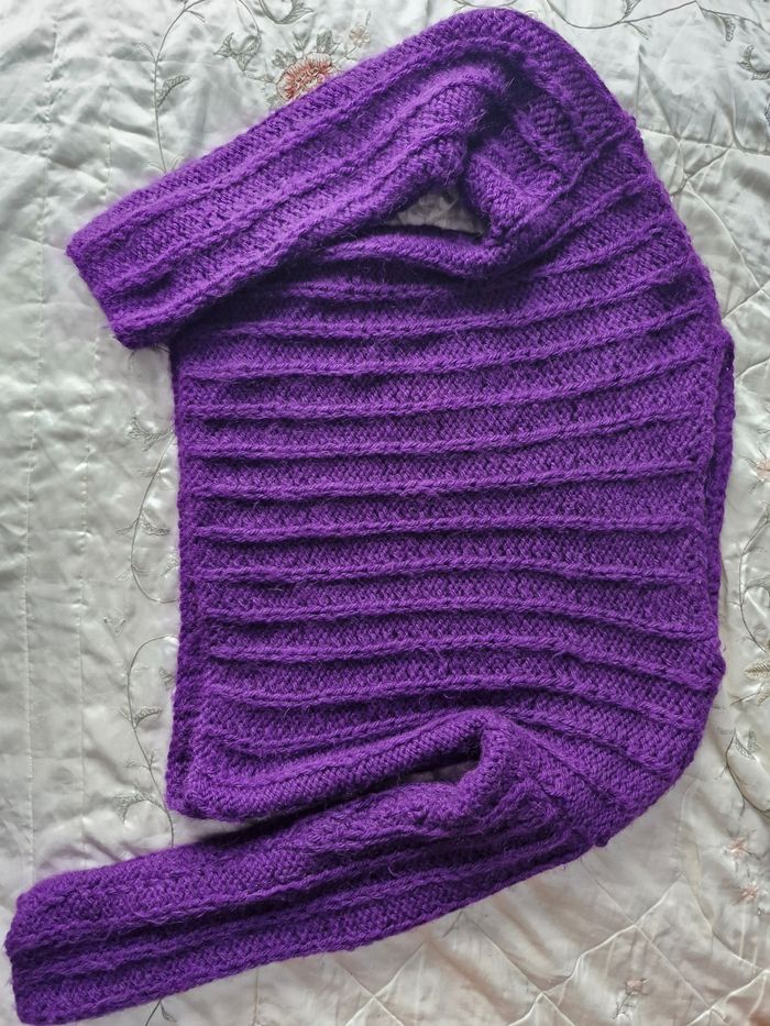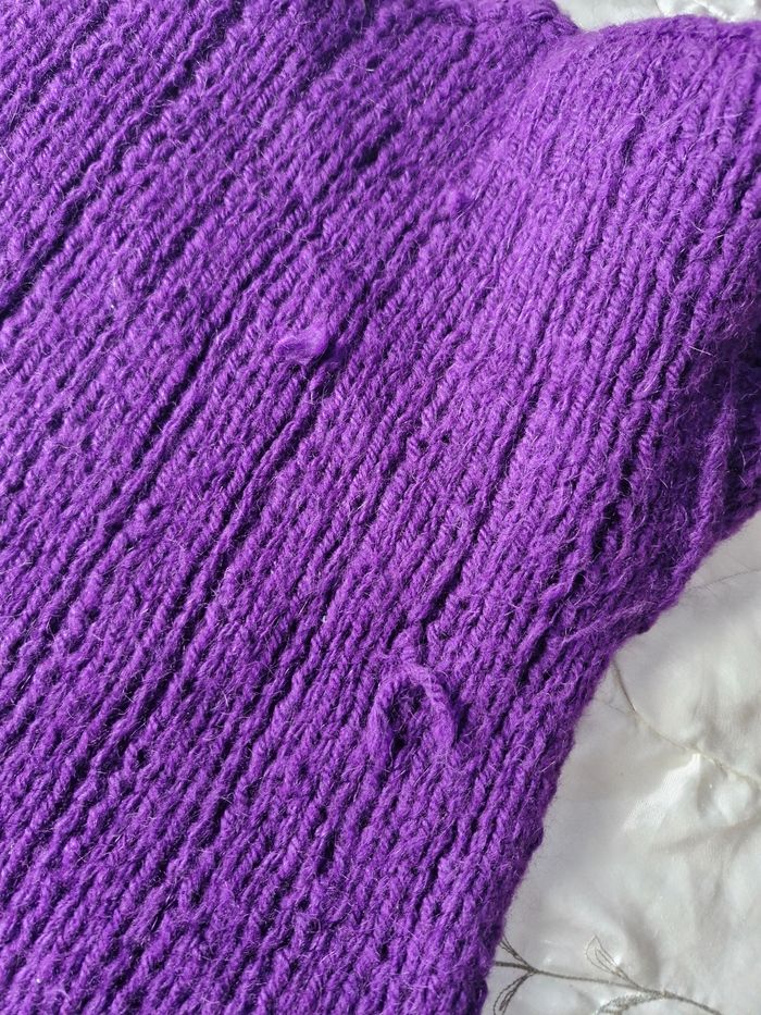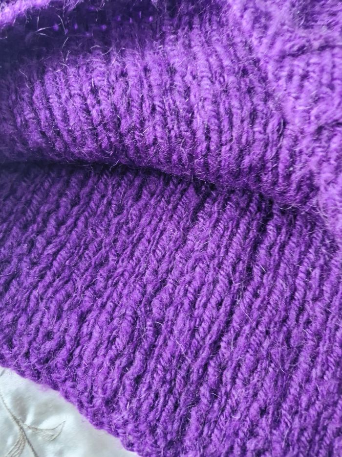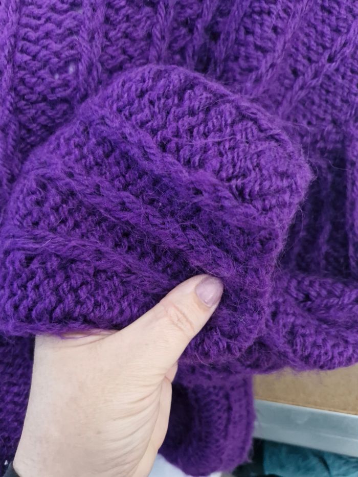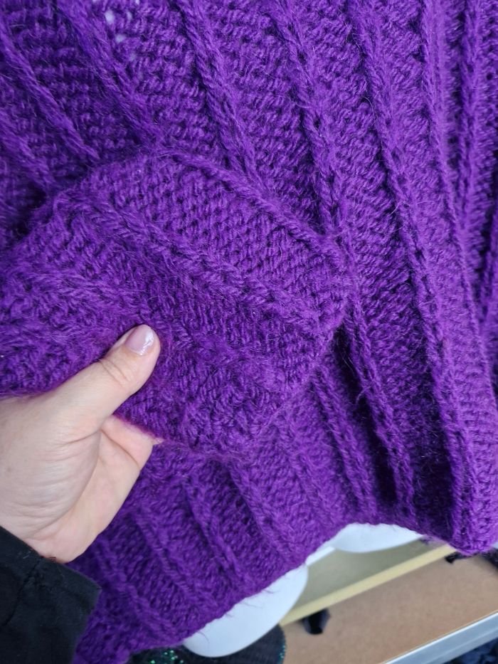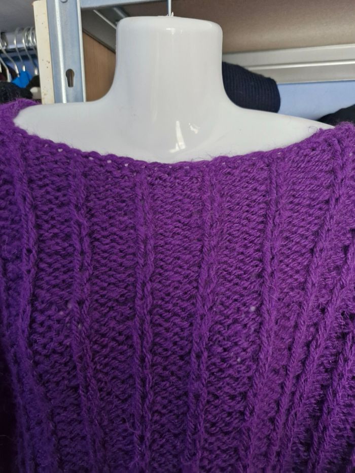 🌸Magnifique pull oversize court Col droit , Manches longues ⚕️ Grosses mailles chaudes sans zone côte 💜Couleur Violet 🌟 Marque Tricoté main 🏷 Taille de T38 (en porter large) à un T48 sans souci 📌 Mesures sur mailles extensibles Aisselles de 57cms à plat à 72cms en tirant Hauteur 49cms 📷Bien regarder les photos pour le détail 🚨 Il s'agit de tricot main, il y a donc quelques fils intérieur qui restent. Je n'ai pas remarqué d'anomalie 💲Faites des économies en créant un lot pour profiter des réductions actives dès 2 articles #naya59199pull #naya59199femme42 #naya59199femme46 #naya59199femme #naya59199pullfemme