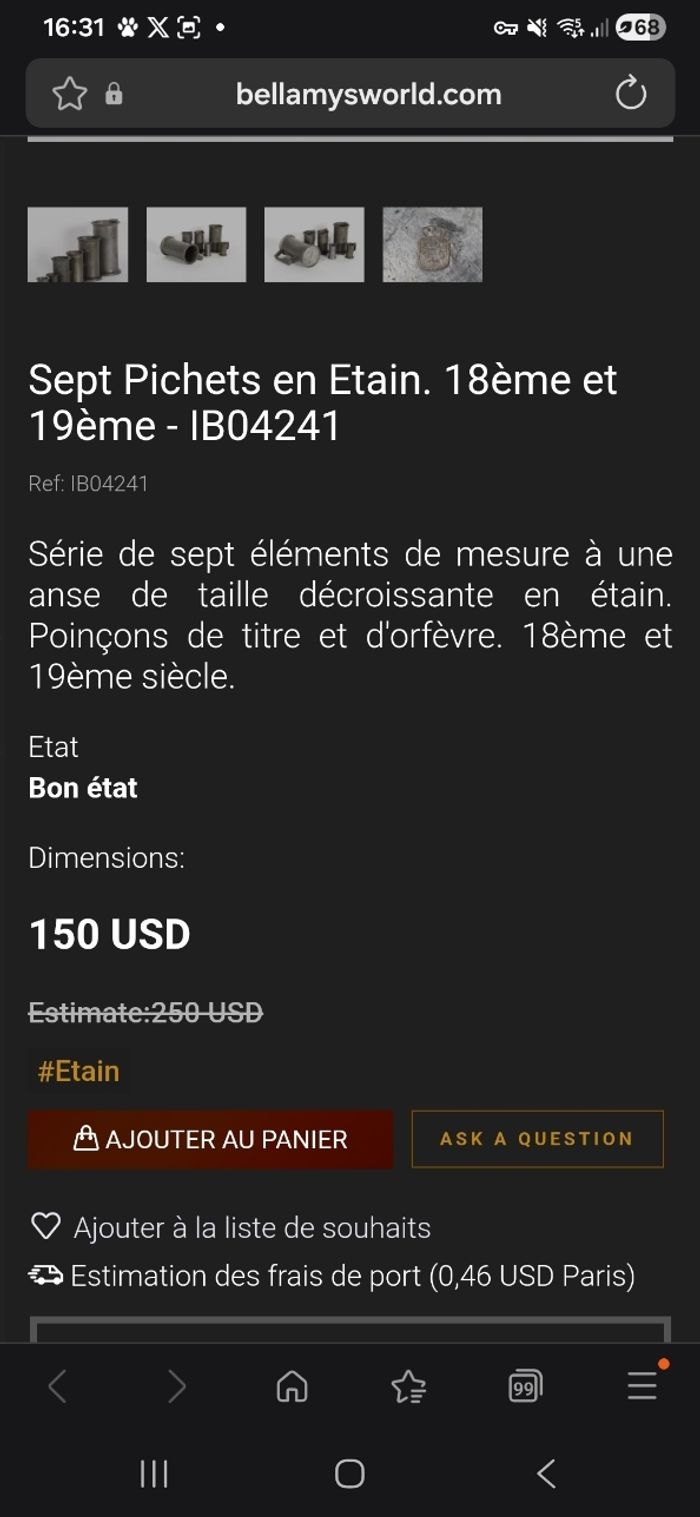 J'ai mis des photos de ce que j'ai vu sur le net article 18 e et 19e siècle Faire offre