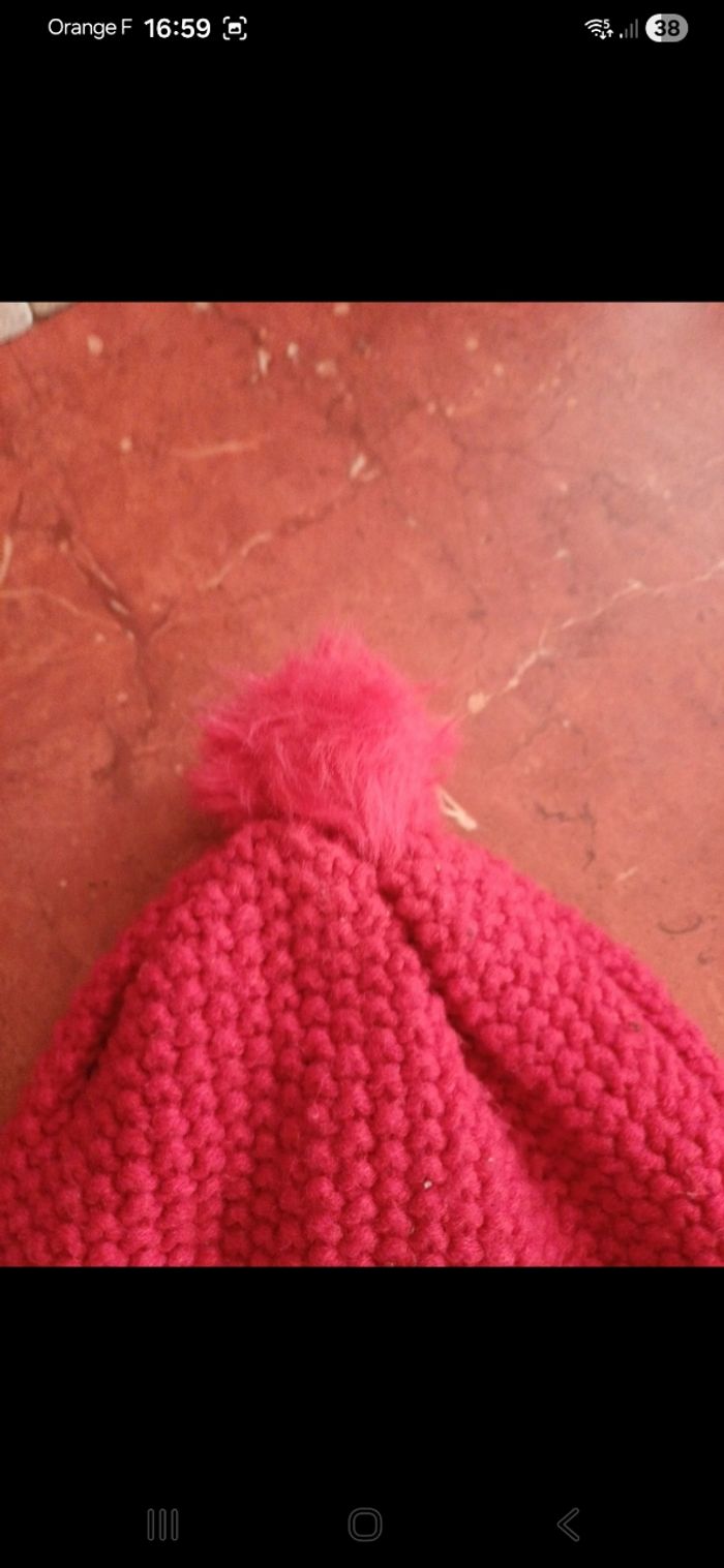 Bonnet avec pompom sur le dessus et une petite fleur sur le devant