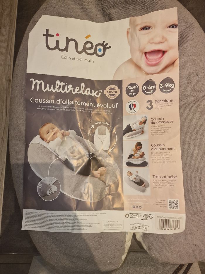 À vendre : coussin de grossesse/d'allaitement évolutif 3 fonctions : - coussin de grossesse - coussin d'allaitement - transat Idéal de 0 à 6 mois De la marque TINÉO 20€