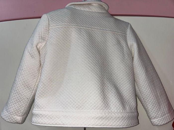 Bonjour, je vends cette blanche de la marque Orchestra. Veste en bon état mais qui bouloche Taille 18mois