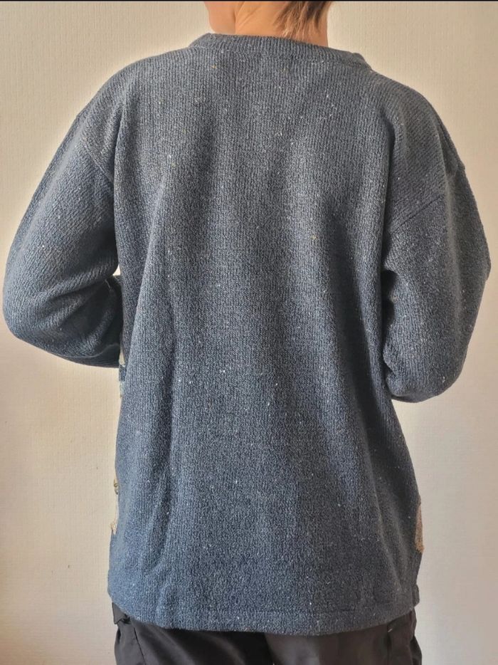 Pull d'hiver jumper maille knit bleu blanc à motifs en acrylique et laine vintage 80s/90s - photo numéro 4