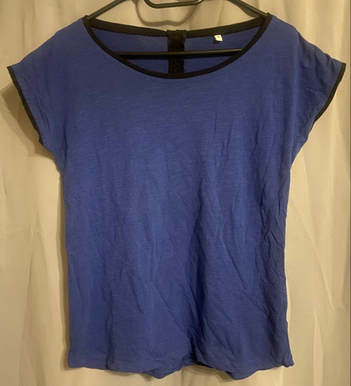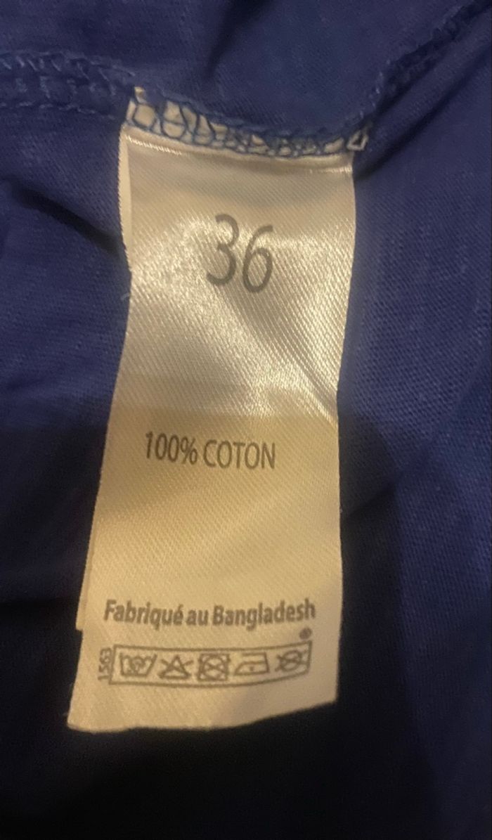 Tee-shirt bleu roi et noir,en très bel état. Il est noté sur l’étiquette taille 36 mais selon deux guides de taille de l’IA,correspondrait plus à du 36/38. Mesure d’aisselle à aisselle:46cm=92cm de tour de poitrine. 🎯Guides de tailles disponibles en dernières photos. 📌Il faut savoir que souvent les marques peuvent avoir un guide de taille qui diffère des unes aux autres donc Merci de vérifier les mesures de vos vêtements avec celui-ci car si ça ne convient pas je n’en serais pas responsable. Si vous avez le moindre doute, n’hésitez pas avant achat de me demander les mesures ou renseignements afin d’éviter tous désagréments. PS:Tous les vêtements sont lavés et repassés avant chaque envoi. 🔥🔥Réduction sur les lots activée🔥🔥 -5% de remise pour 2 articles. -10% de remise pour 3 articles. -20% de remise pour 5 articles.