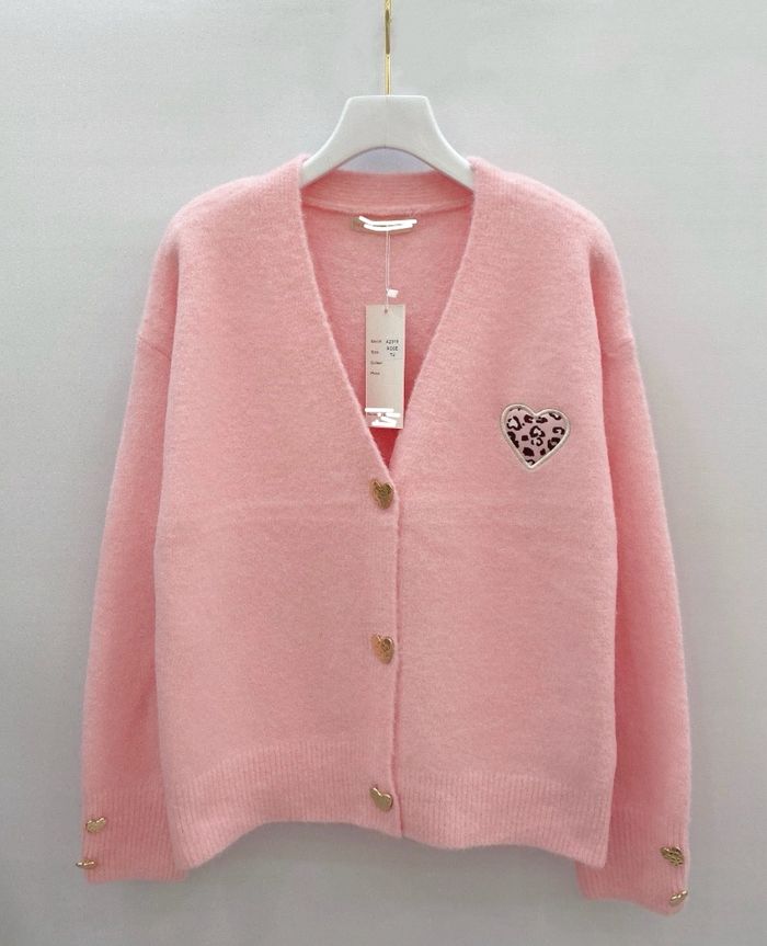 Sublime gilet rose doux avec coeur léopard T.U 36/42