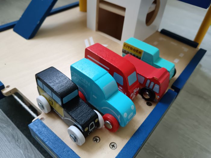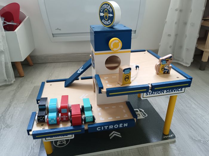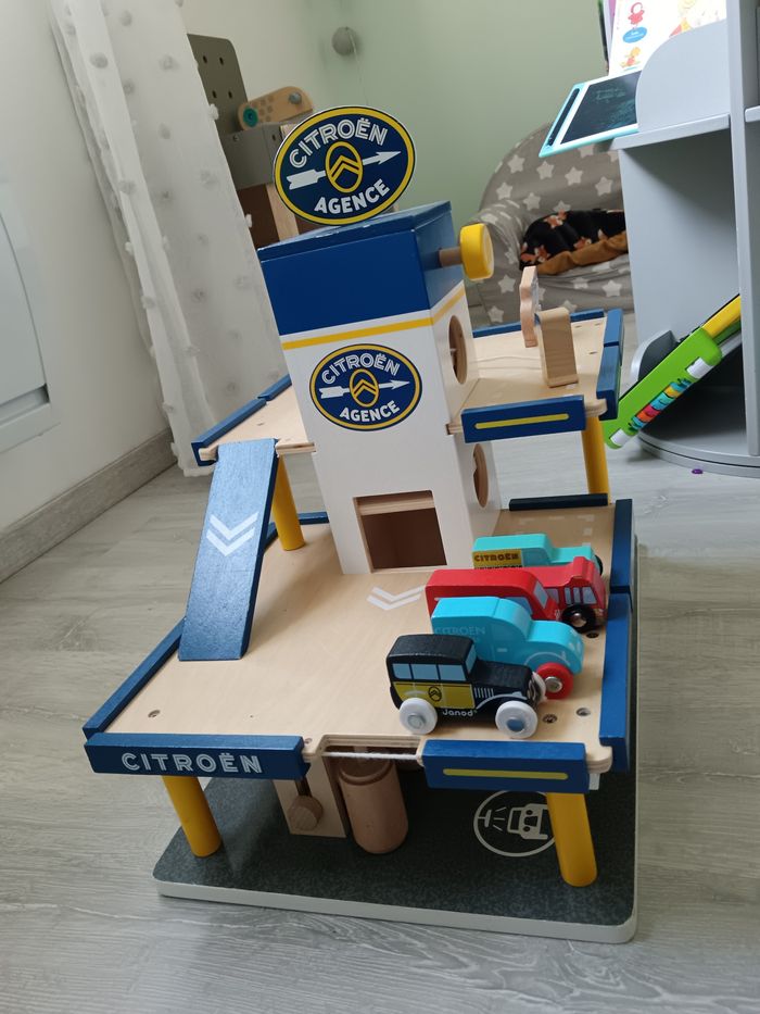 Pour le plus grand bonheur des petits, mais aussi des grands, le garage Citroën en bois, fruit d’une cocréation Citroën et Janod, est fourni avec 4 voitures miniatures. Équipé d’une pompe à essence et d'une station de lavage avec rouleaux chapeautés par 2 personnages, le garage Citroën en bois est également muni d'un pont élévateur et de plusieurs rampes d'accès. Aménagé sur 2 étages avec une grande modularité, ce garage miniature est fabriqué en bois pour plus de commodité. A partir de 18 mois. Dimensions : 46,2 x 31,2 x 35 cm