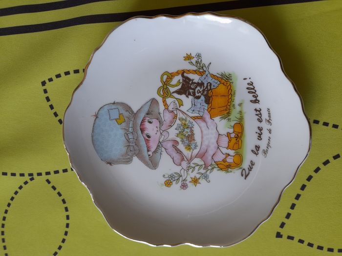 Assiette décorative en porcelaine "Que la vie est belle !" Bergère de France à accrocher diamètre 18 cm neuve jamais servie 8 euros
