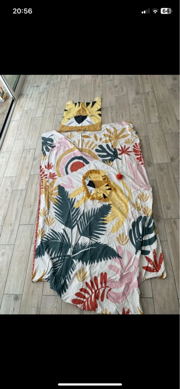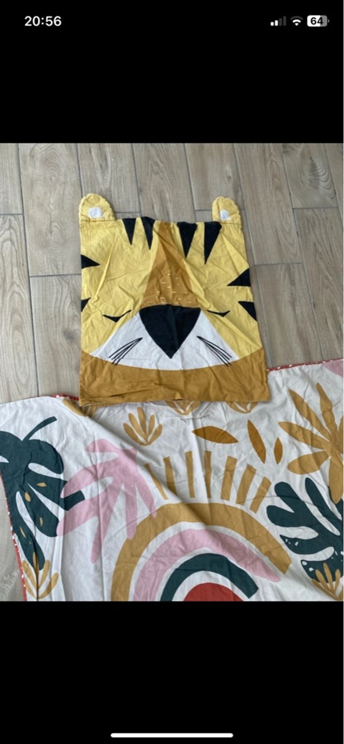 Parure de lit enfant 90x190 thème jungle safari Avec boule qui tiens avec fil au bout de la queu du lion (acheter comme cela)