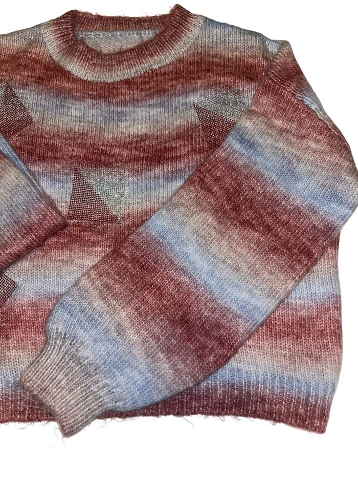 Pull en maille dégradée rose & bleu avec carré brillantes - photo numéro 1