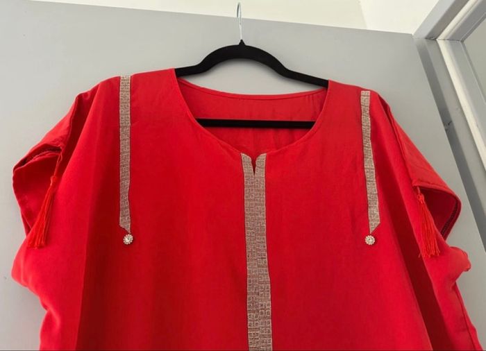 Djellaba femme rouge avec strass - photo numéro 1
