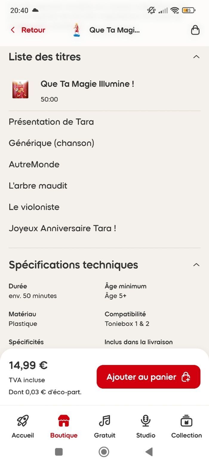 Lot figurines tonies Tara Duncan "vive la magie" et "Que la magie illumine"