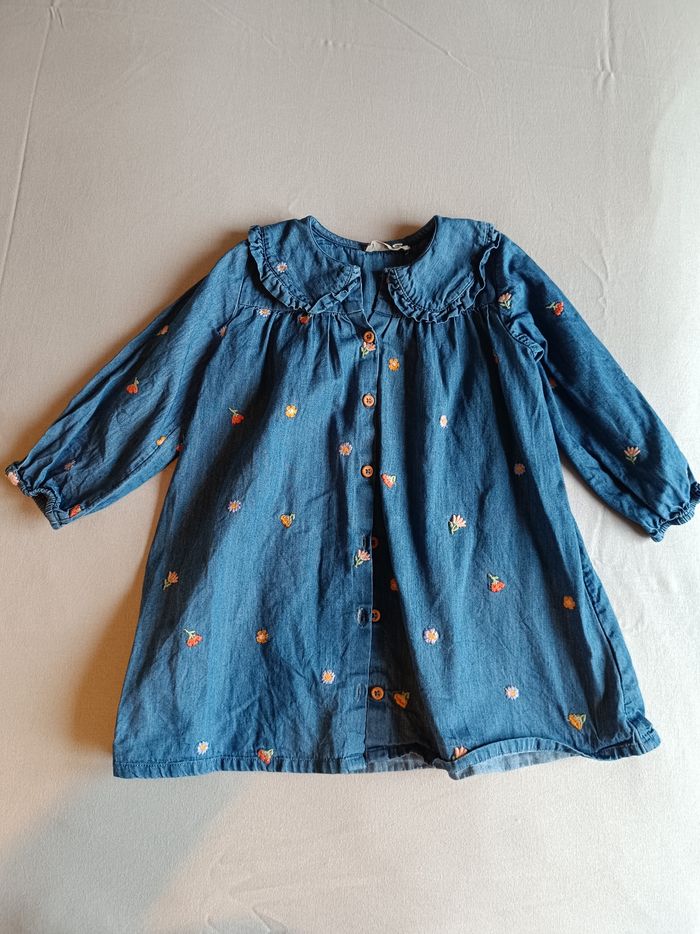 Robe en jean bout chou monoprix avec motifs fleurs. Taille 23 mois. Très bon état.