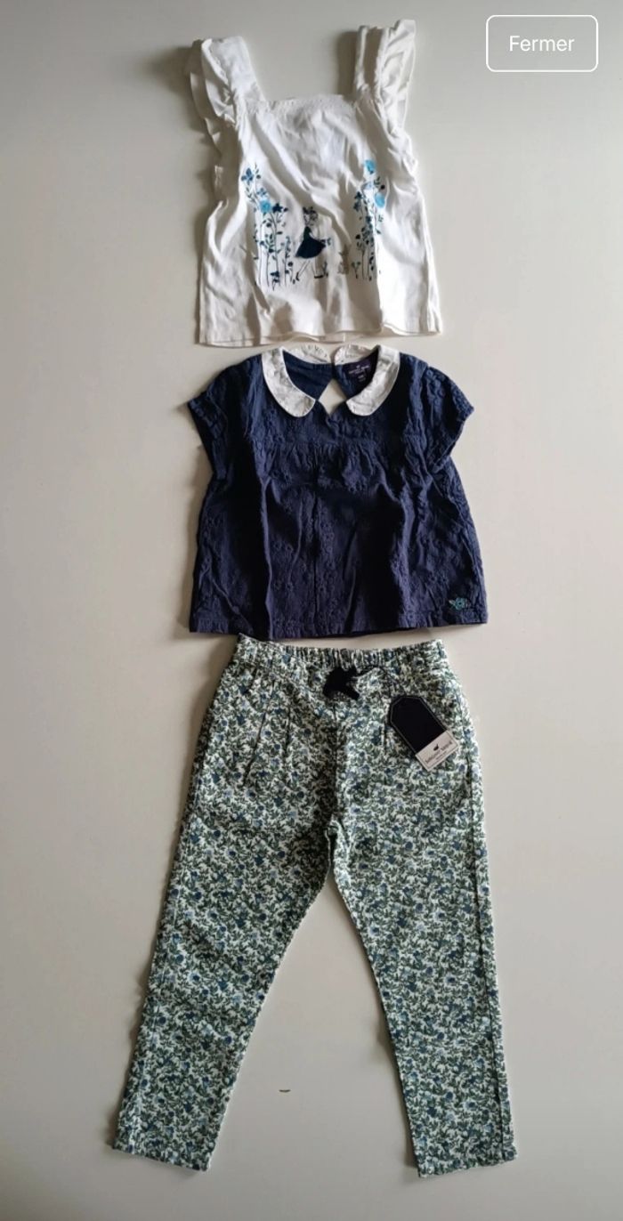 Jolie collection, très classe , composé : Un pantalon neuf 4 ans Un haut bleu marine 4 ans Haut blanc sans manche 4 ans Sergent major