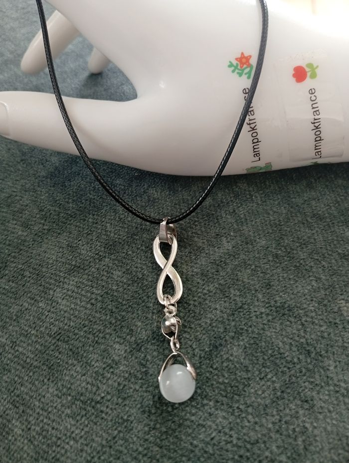 Collier en pierres naturelles pierre de lune et signe infini  - photo numéro 1