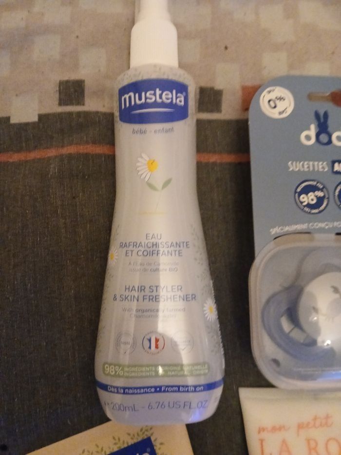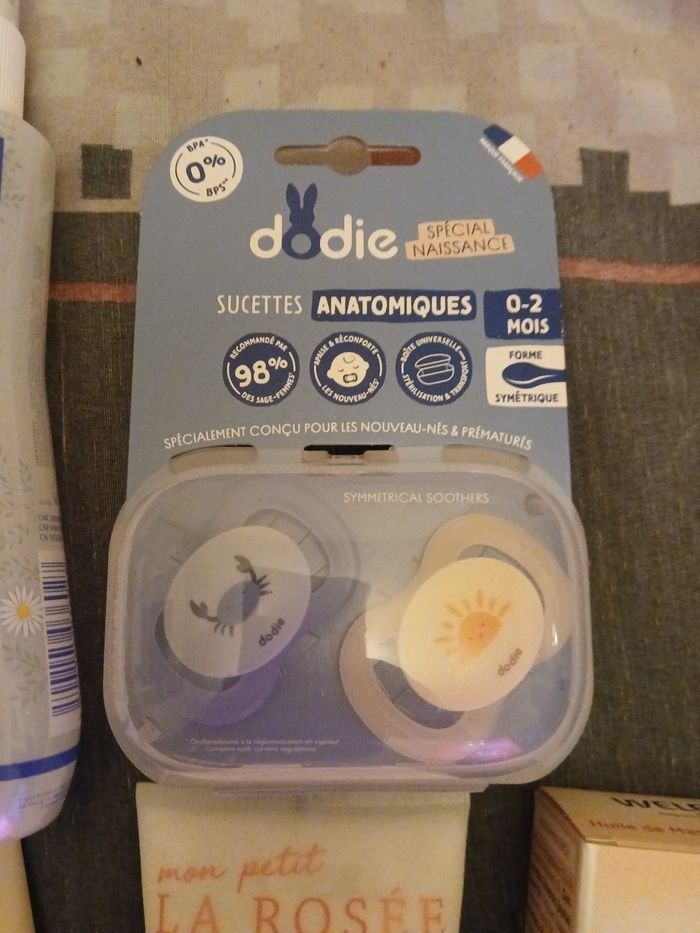 Lots pour bébé et maman Sucettes dodie 0-3ans Creme hydratante mon petit la rosée Changé siège bébé mustela Eau rafraîchissante mustela Huile de massage weleda Jamais servie