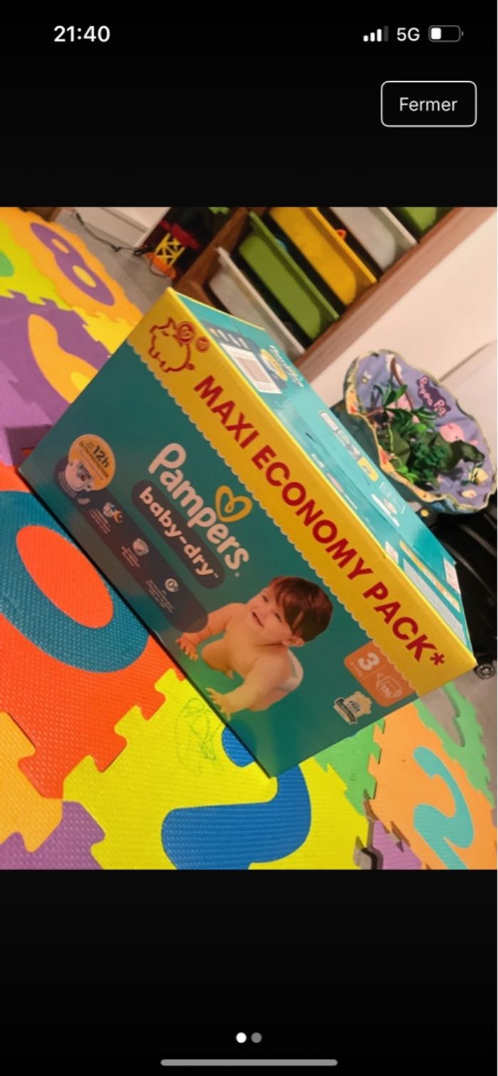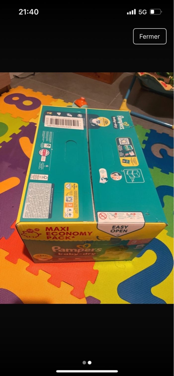 vend ce paquet de couches Pampers en taille 3 136 couches mon fils est passé à la taille supérieure ! neuf carton encore fermé.