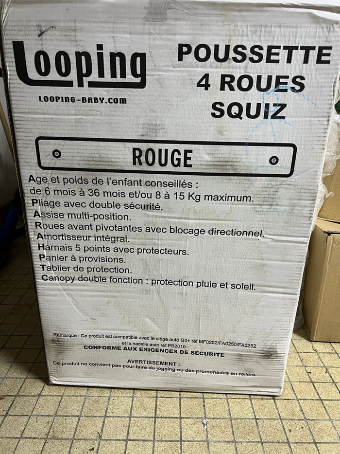 Poussette looping squizz rouge neuve dans le carton, produit fabriquée en France !🇫🇷 Poids plume Forme ultra-compacte Ultra-maniable Sécurité et confort pour votre enfant Évolutive Pensée pour les parents, déssinée pour les bébés, la poussette Squizz vous offre le combo parfait entre robustesse, confort, et fonctionnalité. Légère et ultra maniable, elle se plie en un tournemain et vous suit partout. En véritable alliée de vos vies citadines, la Squizz peut s'adapter également aux chemins plus accidentés. Cette poussette compacte, évolutive et durable, vous accompagnera de la naissance et jusqu'à 15kg